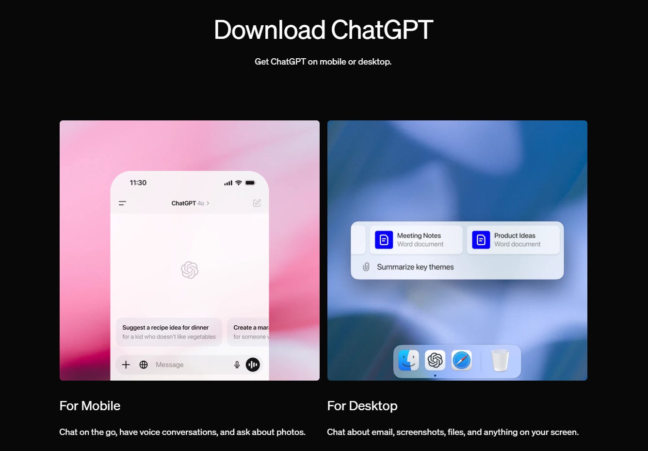 The ChatGPT desktop app puts AI right where you need it: on your desktop, no browser tabs required. It’s fast, reliable, and always ready to: